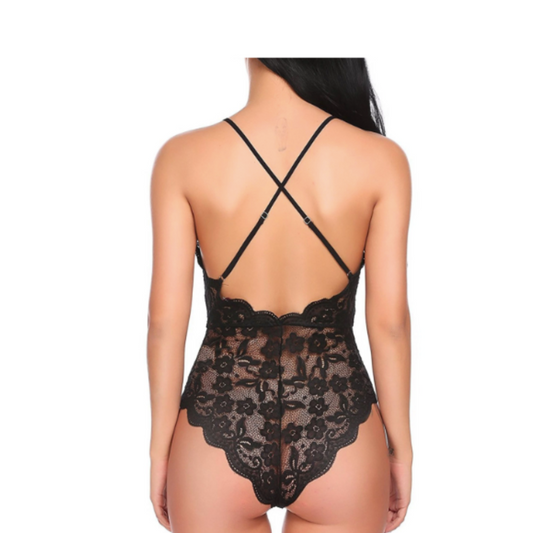 One Piece Sexy Lingerie With Lace Bodysuit Deep V Adjustable Crisscross